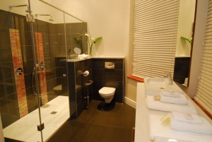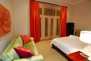Deliciosus: Green and orange The double room opens on a private patio under an enormous palm tree. The bathroom is exceptionally spacious and a chandelier above the stand-alone bath adds the finishing touch to the decor. It is further equipped with double washbasins, a large shower and separate toilet facilities.