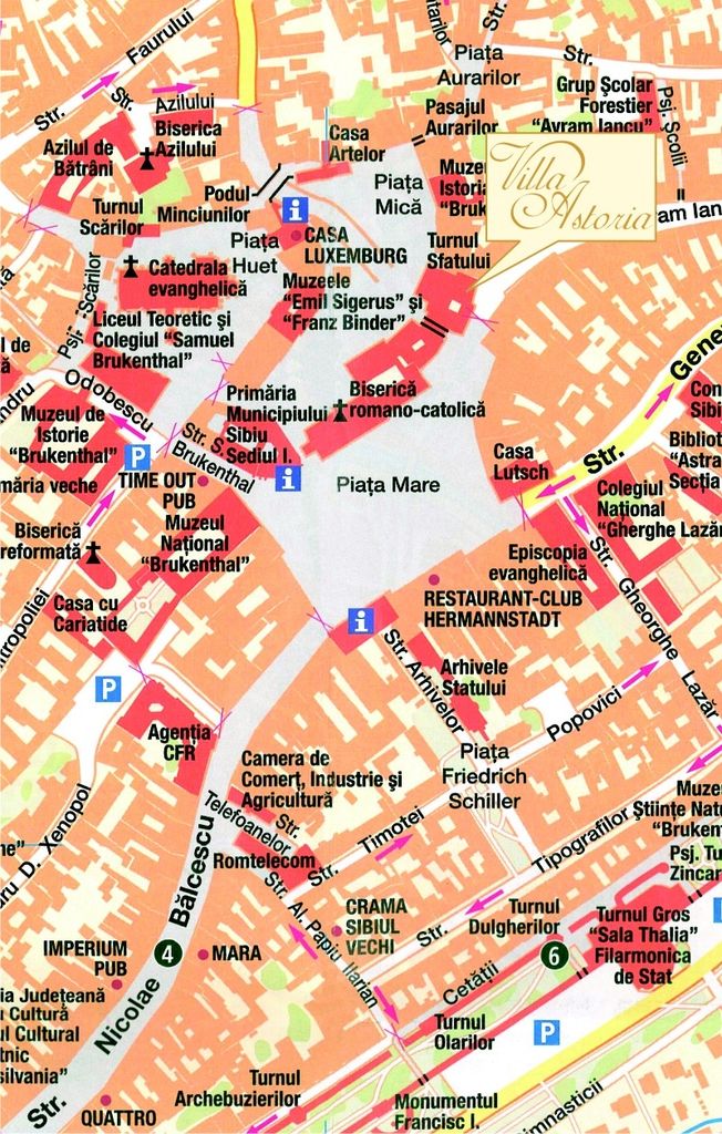 • Hotel Villa Astoria is located right in the historical city centre of Sibiu, between Piata Mare (Big Square) and Piat Mica (Small Square) all tourist attractions are a few steps away.