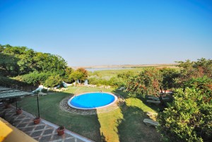 Andalusian typical Hacienda located in the very famous Route of the White Villages, near Arcos de la Frontera in a beautiful farm property with splendid views to the Lake, Mountains and fields of sunflowers and cotton.The building dated from the XV century and preserves its caracter and charm, which gives an ambience of peace, relax and silence.All the rooms are different and unique and the central courtyard is full of pot flowers as geraniums or bouganvilleas where you can sit to hear just birds and smell jasmines. Meals are always based in traditional home made dishes from the area, cooked with our own garden products. It offers a very good location to explore the different and attractive cities nearby as Jerez with its World famous Sherry and Horses,or Cadiz the most ancient city of Occident.Also it is possible to ride horses, or watching birds in front of the house, in the close Natural Park Reserve of Grazalema or Doñana.