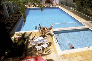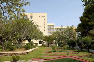 The Hotel Victoria is located in the bay of Talamanca, 50 m from the beach, 3 km. from the city of Ibiza and 10 km from the airport. Bus stops 25 m. away. A family-run hotel with a very welcoming, pleasant manner and great atmosphere. A total of 139 rooms totally renovated in 2005/2006, with full bathroom(single with shower) A.C., refrigerator, direct telephone line and internet connection. It has a social room, a satellite TV room, bar-cafe, -air conditioned buffet-restaurant, pool for adults and children, garden, crazy golf, table tennis and billiards. Entertainment program with live music several times a week. The Casino of Ibiza and the world famous Night Clubs Pacha, El Divino, Privilege and Space are all within a 10 – 15 minute drive.