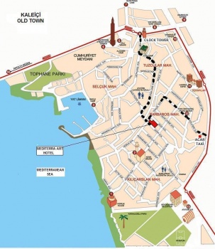 When you arrived to central of the city ,then take the Ataturk St. which goes to old town which brown signs show the name of Kaleiçi and follow the fantastic way, find easily the hotel signs on the walls .The hotel is located in the Old Town of Kaleici of Antalya. The Mermerli beach is conveniently located just 200 m away and International Antalya Airport is 10 km away.Beach : 150 m Park : 50 m Konyaaltý Beach : 3 km Lara beach : 8 km Airport : 10 km Bus station : 8 km City Center : 100 m