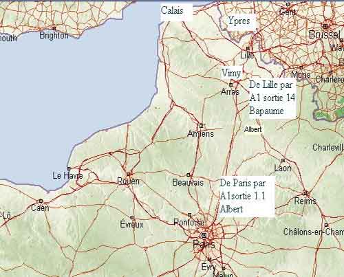 • From the Motoway A1 direction Paris Lille exit number 13.1; D929 direction Amiens ;Cross Albert Follow the signs at the top of the hill the first house on your right.