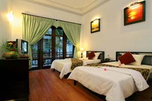 Southern Hotel and Villa hotel is a 3 star hotel . It is 25 kms from Da Nang Airport and 28 kms from Da Nang railway station to our hotel. Southern Hotel and Villa is Situated in peaceful and quiet place, a convenient hotel for all travelers. Just 15 minutes walking to the An Bang beach. Tra Que organic vegetable village and Japanese trader tombs are also just some step from the hotel. We take pride in our ability to fulfill your requests , our complimentary Shuttle service will drop you off at the beach or in Town any time between 6am and 10pm , our restaurants serve local , Asian and Western dishes. Southern Hotel and Villa is a boutique hotel with 34 elegant rooms. All rooms offer city, green field and pool view and was equipped with modern amenities such as Individual controlled air-conditioning, Satellite TV with international channels, Private bathroom with bath_tub and shower, hot & cold shower, mini-bar, IDD telephone, Coffee/Tea making facilities, Safe box, Working desk, Hair dryer, Wifi and DVD player in room. The hotel has four types of rooms consisting of Superior,Deluxe Villa,Special Deluxe Villa and Family Deluxe Room. Superior room is 30 square metre, Deluxe is 35 square metre, Special Deluxe is 70 square metre and Family room is 70 square metre. The well-trained, friendly and zealous staff promises to bring guests the best services. Staying Southern Hotel And Villa, guests can discover the new sensations with the surrounding connected sites as: My Son Sanctuary, Marble Mountain, Ba Na Highland,Tra Que Village... It is easy to take the boat tour on Thu Bon River, to Cham Island or witness many other nice things from Hoi An City. Guests will have the Best and Valued Money Services when staying at Southern Hotel& Villa Hoi An.