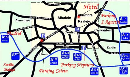• Once you arrive to "Plaza Nueva" locate "Santa Ana church and the river "Darro", continue with the river the street, in 3 minutes from Plaza Nueva you will arrive to our hotel on your left.