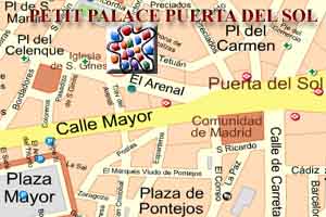 How to arrive Access from the airport (A-2 – Barcelona -): Take the access to M-40, direction A-3 and A-4 (Valencia & Andalusia). Take the turn off towards Vicalvaro-O'Donnell. At the roundabout go in direction O'Donnell until you reach Alcala Street. Continue down Alcala Street until you reach the Puerta del Sol. Once there turn off at Arenal Street, where the hotel is found at N 4. Underground Station: Puerta del Sol. Bus: Interchange at the Puerta del Sol (N 1, 2, 5, 51, 147 and 150)
