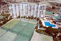 We invite you to discover one of the outstanding hotels on the Costa Blanca! Thanks to its priviledged location and the various offers in lodging, restaurants or self-catering, sports and leisure, the Hotel Eurotennis is ideal for a stay as “single”, with family, friends, in groups, banquets, congresses, etc. Everybody is welcome here - also well behaving pets! The Costa Blanca is a most interesting, picturesque landscape and will certainly make you remember your visit as jolly unforgettable. The staff " home-made" since years - is known for being courteous and is lead by a swiss management. The Hotel Eurotennis is one of the four prize winners out of 400 candidates, by decision of the Valencian Spanish Tourist Board, for best quality and service. The Costa Blanca, is reknowned as the “European Florida”, thanks to a mild, dry climate, which ensures good weather throughout almost the entire year. The Hotel Eurotennis is located on top of the small sea cove “La Caleta”, 3 km. south of the fisher town Villajoyosa, in the area called “Urbanisation Montiboli”, far away from busy traffic and mass tourism, yet only at a distance of 12 km / 8 miles from Benidorm and the large fairground park “TERRA MÍTICA”. 24 hrs. service attendance. Languages : Spanish, french, german, english Available : Fax Photocopies The usual credit cards are accepted: Visa, Diners, Master Card, Amexco and T6000. The Hotel capacity is 280 beds: 9 apartments 2 bedrooms, bath, living-dining room, kitchen and balcony. 24 double rooms 2 bedrooms, bath, balcony. Air conditioning. 50 double rooms bath. Air conditioning. 25 studios with 2 beds, living-room, kitchen, bath, balcony. Air conditioning. All lodging units are located southwards, with direct sea view, heating, telephone, SAT-TV (11 programs), safe. The Hotel disposes of several large assembly halls, used mostly for congresses and banquets. Hall BAHÍA Splendid view over gardens, tennis courts and in the b