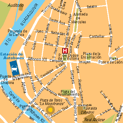 From any of the accesses to the city, following the ring road (SE-30) you can easily reach the hotel, going through the Calatrava street to "Alameda de Hércules" and Trajano street at whose end you will see "Plaza del Duque" square. Another access is through Baños street, Gavidia square and finally Concordia square where you can drive into the arranged parking.