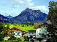 We are a family-owned romantic hotel in classic alpine style in the small village of Schwangau. Situated closest to the castles of Ludwig of Bavaria (Neuschwanstein and Hohenschwangau). We have the direct view to the castles of King Ludwig II. Additional facilities include a Hotel-bar, attractive breakfast buffet and restaurant, Winter-garden (conservatory), lift (in the main house), private parking and children leisure room. For your Wellness we have * a Beauty-Spa with different treatments (facial, body...) * a new "Roman Thermal" with 3 different kind of saunas, whirlpools, relax-room, etc. Just 5 minutes walking distance from here you will find the "Crystal-Therme" with: Thermal indoor and outdoor pools with a naturell brine welfare-water, Pool with a panoramic view (to the castles!), meditation room with precious stones, saunas, etc. A great attraction is the Musical hall in Fuessen with the life story of King Ludwig II. We can arrange for our guests good tickets for this show ! Here is an excelent base for excursions to nearby Oberammergau (35 km), Garmisch-Partenkirchen (50 km), Munich (100 km), Lindau or Lake Constance (110 km) and some Austrian cities like Innsbruck (100 km). Our Village Schwangau lies close to the southern-most point of Germany's famous "Romantic Road" and is considered by many as its highlight !