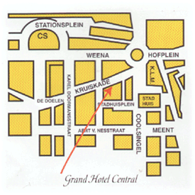 Vanuit Dordrecht/Breda/Nijmegen: A15/A16 richting Rotterdam/Den Haag U neemt afslag Rotterdam Centrum/Capelle Onderaan de afslag komt u bij een verkeersplein Die gaat u ¾ rond en volgt u de borden Centrum Deze weg, de Maasboulevard, volgen tot aan de Erasmusbrug (aan uw linkerhand) Bij het stoplicht gaat u rechtsaf en blijft u deze weg (Schiedamse Vest – Coolsingel) vervolgen tot aan de rotonde met het grote fontein (Hofplein) Bij het stoplicht gaat u geheel rond zodat u weer op de Coolsingel uitkomt maar nu aan de andere kant van de weg Direct na de rotonde, gaat u de eerste straat naar rechts U bevind zich nu op de Kruiskade Een paar honderd meter verder aan uw linkerhand is Grand Hotel Central Welkom! Vanuit Utrecht/Arnhem Vanaf de A12 volgt u Ring Rotterdam Noord U bevind zich nu op de A20 richting Den Haag/Hoek van Holland U neemt afslag Centrum Borden Centrum volgen tot aan de rotonde met het grote fontein (Hofplein) Bij de rotonde gaat u rechtdoor de Coolsingel op Direct na de rotonde, gaat u de eerste straat naar rechts U bevind zich nu op de Kruiskade Een paar honderd meter verder aan uw linkerhand is Grand Hotel Central Welkom! Vanuit Den Haag/Amsterdam Vanaf de A4 volgt u Ring Rotterdam Noord U bevindt zich nu op de A13 richting Dordrecht/Gouda/Utrecht U neemt afslag Centrum Borden Centrum volgen tot aan de rotonde met het grote fontein (Hofplein) Bij de rotonde gaat u rechtdoor de Coolsingel op Direct na de rotonde, gaat u de eerste straat naar rechts U bevind zich nu op de Kruiskade Een paar honderd meter verder aan uw linkerhand is Grand Hotel Central Welkom! Wij hebben geen eigen parkeergelegenheid. Aan uw rechterhand bevindt zich een publieke parkeergarage waar u uw auto kunt parkeren.
