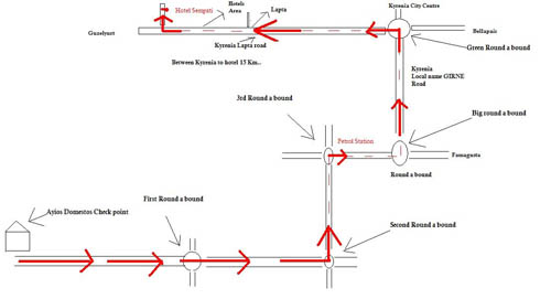 The Direction from Nicosia to our hotel