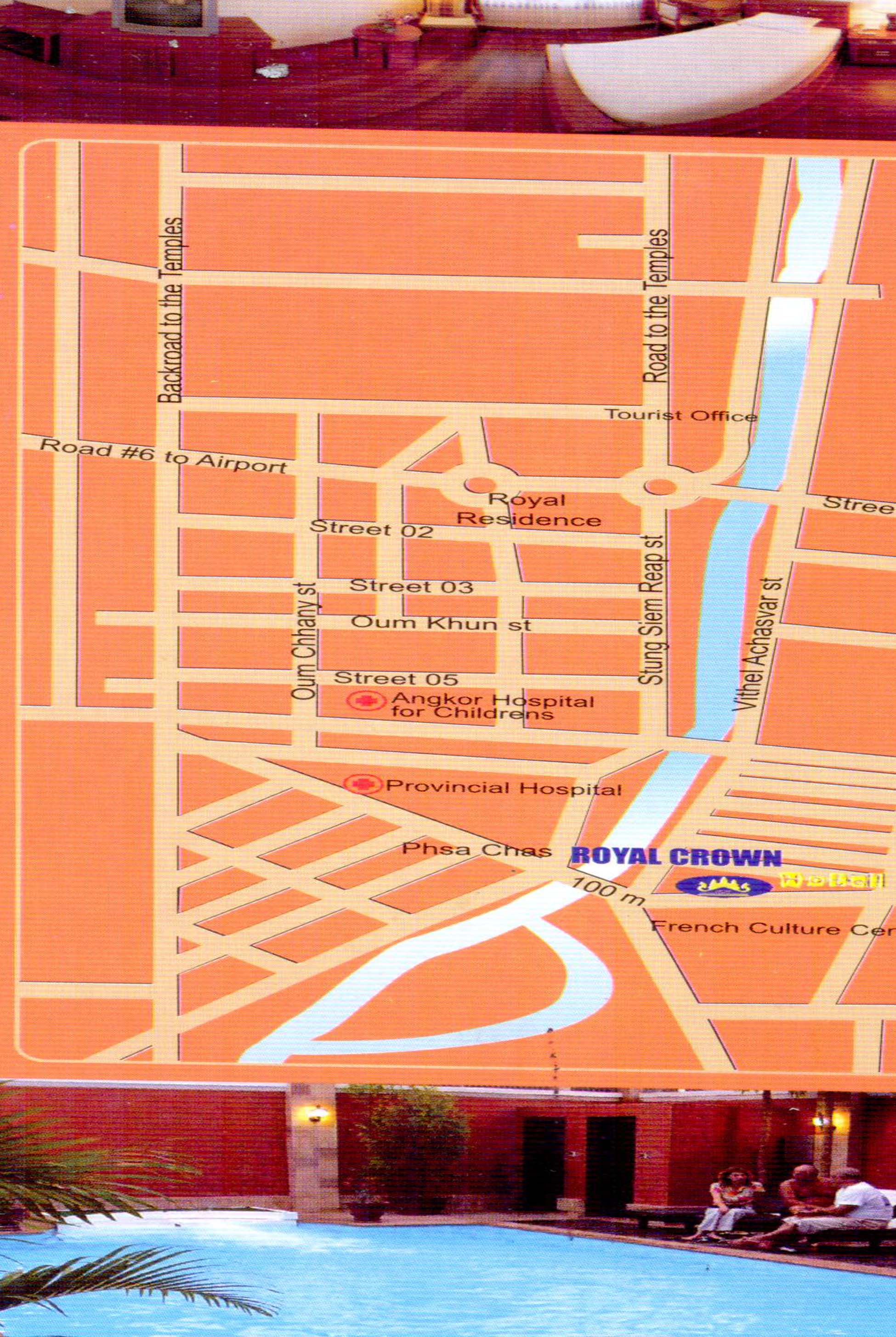 • The Elegance Royal Crown Hotel stans only 100 meters away from Phsar chas Market,a market providing the biggest varietyof souvenir and has the most interesting local ambiance in Siem Reap . Accession to the great ancient take only 15 minutes from hotel.