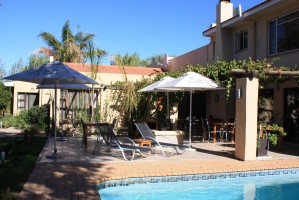 Villa Rustique guesthouse offers 5 luxury rooms all en-suite, minibar, airconditioning, tea & coffee facilities, private entrance and patio. 365 days a year, when the weather is fine, we let you enjoy our superb breakfast on the patio around the pool. Guests can relax and stay refreshed around the swimming pool or enjoy a day trip to a local Oudtshoorn attraction. Villa Rustique is located in a quiet residential area of Oudtshoorn, the city of ostriches and the world famous Cango Caves. We recommend a stay for 2 nights / 3 days, to really be able to enjoy everything the Oudtshoorn region has to offer. We welcome our guests in a relaxing and domestic atmosphere, the lounge with the fireplace is arranged to have your aperitif or on the patio around the swimming pool. We offer free, shaded and secured parking for all our guests.