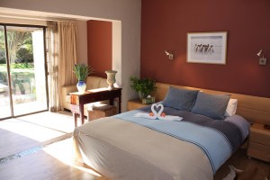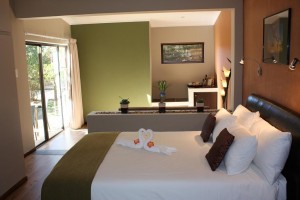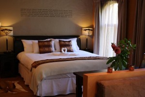 African Dream luxury poolside room with King size bed and shower.