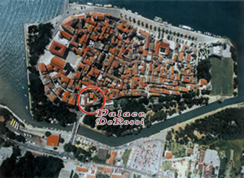 • We are situated in a very centre of old town Trogir. To reach our hotel, You must cross a small stone bridge which leads to the centre. Just after crossing it, turn right to the public parking. Opposite of the parking entrance is our hotel. There is also a sattelite map on our web site, where You can see our exact position.