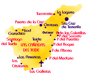 • Map of Teneriffe. In the South-West, you can find SANTIAGO DEL TEIDE, close to it, Puerto de Santiago, where you can find DRAGOS DEL SUR