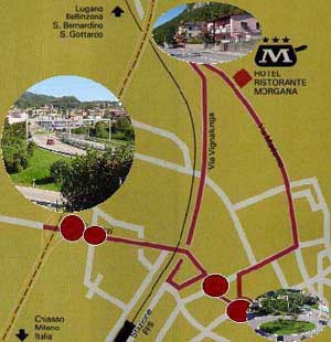 Way to us: 1)Exit Motorway A2/E35 Mendrisio 2) Across 3 roundpoints direction center and at the 4th, get out 3/4 left 3) Belonge the Parkinghouse and at the stop turn over to the right (obligatory) 4) Continue on this road 800m. and you arrive to the Morgana Hotel on the right. Park between the line.
