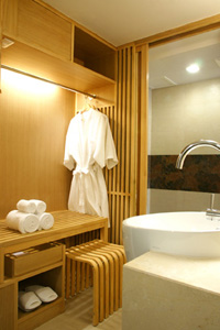 Each suite comes with a large main bedroom and a glass-walled auxiliary bedroom. A separate shower cubicle and bathtub are also provided for the most discerning guests.