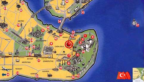 • From the airport, turn right from the exit. Take the road named Yesilyurt and proceed for approximately two kilometres. Turn left at Sahilyolu and then left again at the traffic lights towards Sirkeci. Take the next left turn and the hotel is on this d. Taxis or dolmus (shared taxis) are available from the airport. Havas airport buses run to central Istanbul every 30 minutes at peak times, and hourly at around noon and at night (journey time is approximately 20 minutes).